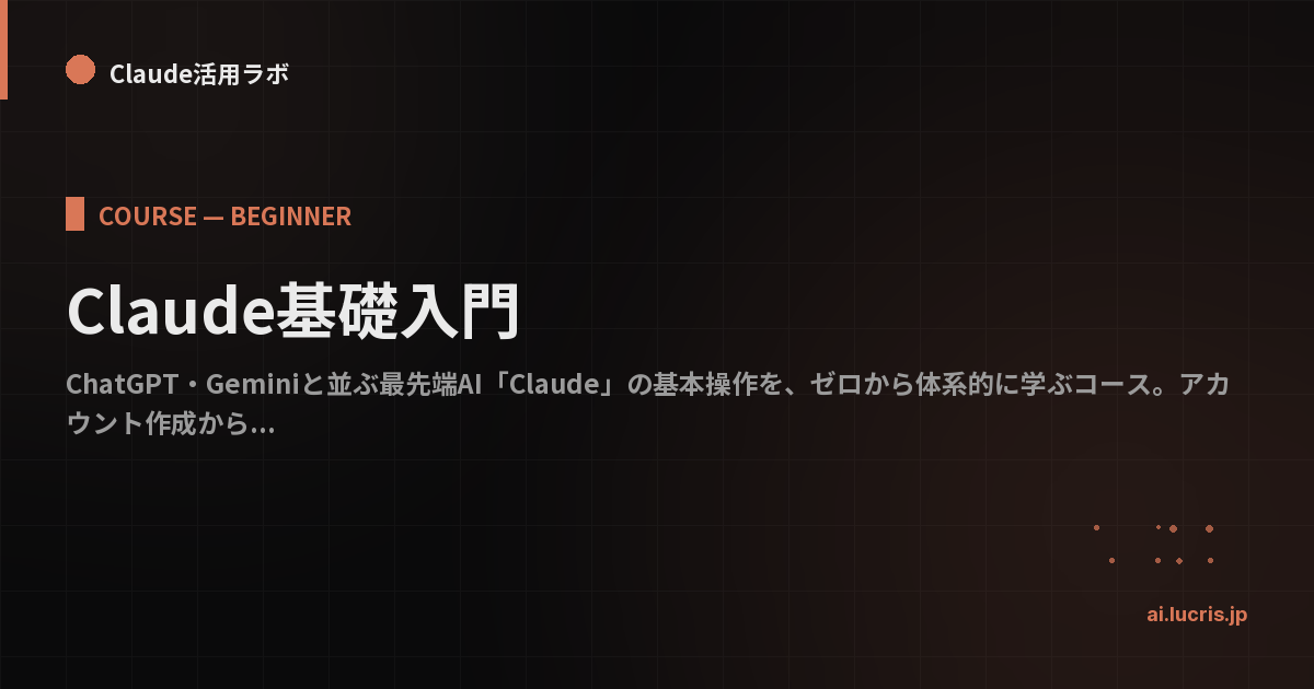 「Claudeって聞いたことあるけど、ChatGPTと何が違うの?」「使ってみたいけど、どこから始めればいいかわからない」——本コースは、そんな方のための入門コースです。