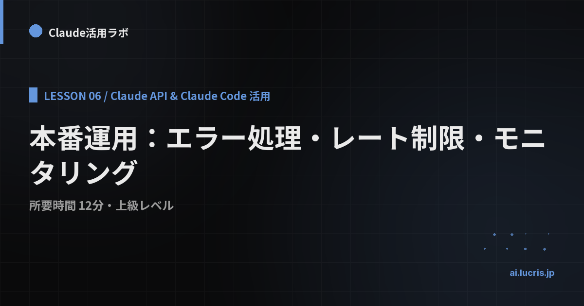 本コースの最終レッスンでは、Claude API を本番環境で安定稼働させるための実務知識をまとめます。