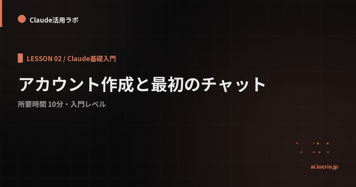Claudeを使うには、まずアカウントが必要です。このレッスンでは、登録から最初のチャットまでを5分で完了させます。
