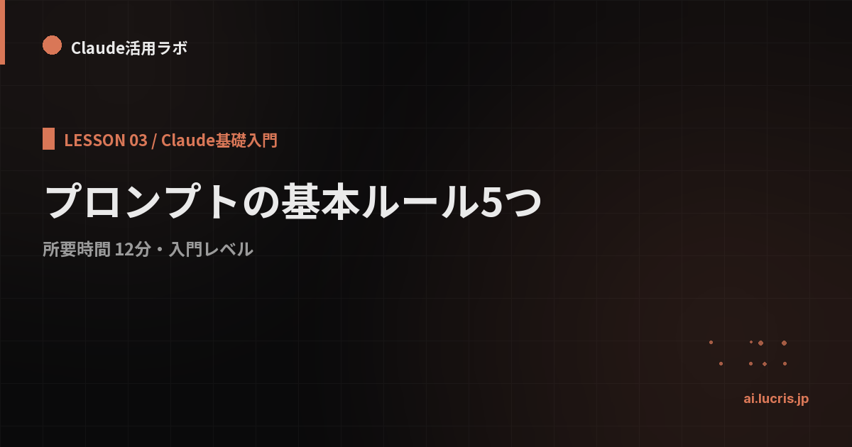 Claudeへの指示文(プロンプト)の書き方には、押さえるべき型があります。このレッスンでは5つの基本ルールを学びます。