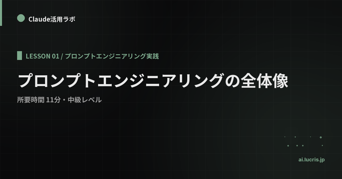本コースの最初のレッスンでは、プロンプトエンジニアリングという領域全体の地図を描きます。「何を学ぶべきかわからない」状態を解消するのが目的です。