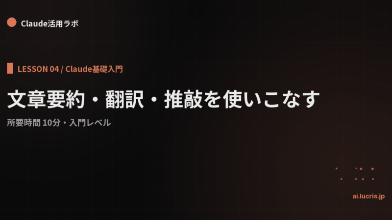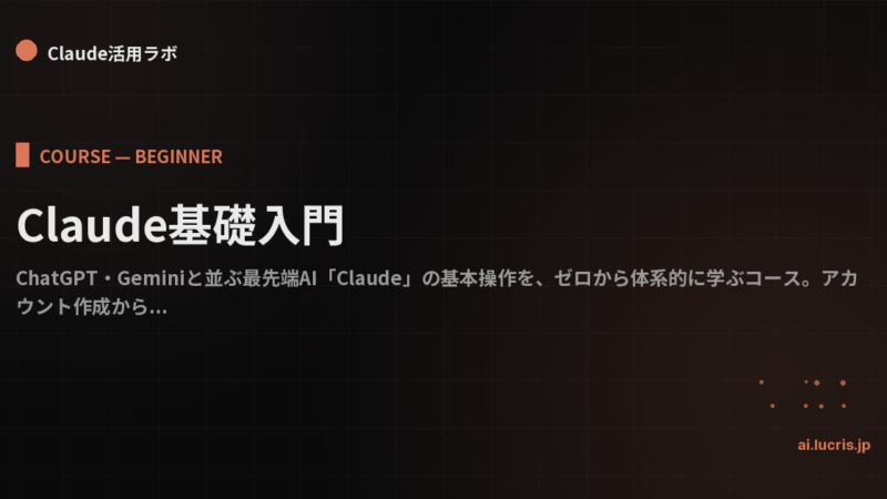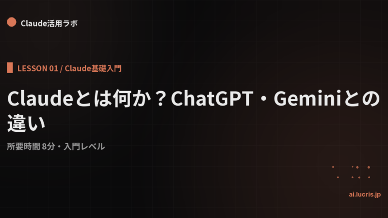 Claudeとは何か?ChatGPT・Geminiとの違い 2026年4月11日 Claudeの正体を最短で理解する。Anthropic社のミッション、他AIとの設計思想の違い、得意分野・苦手分野を整理。 続きを読む →